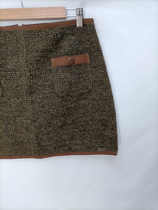 STRADIVARIUS.Falda corta Polipiel animal printT.34