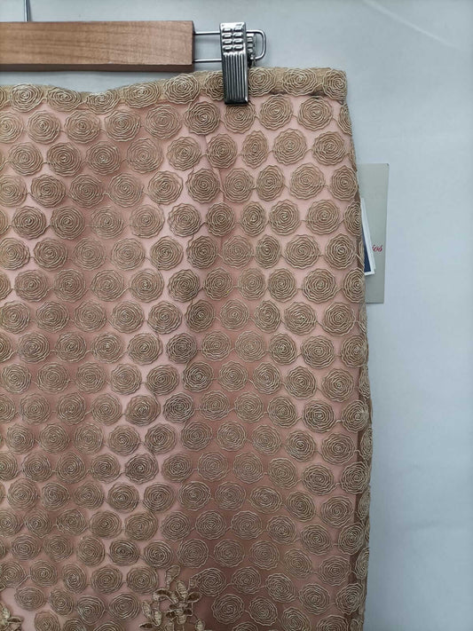 ROSA ROJAS. Total look falda chaqueta verde estampado hojas T.40