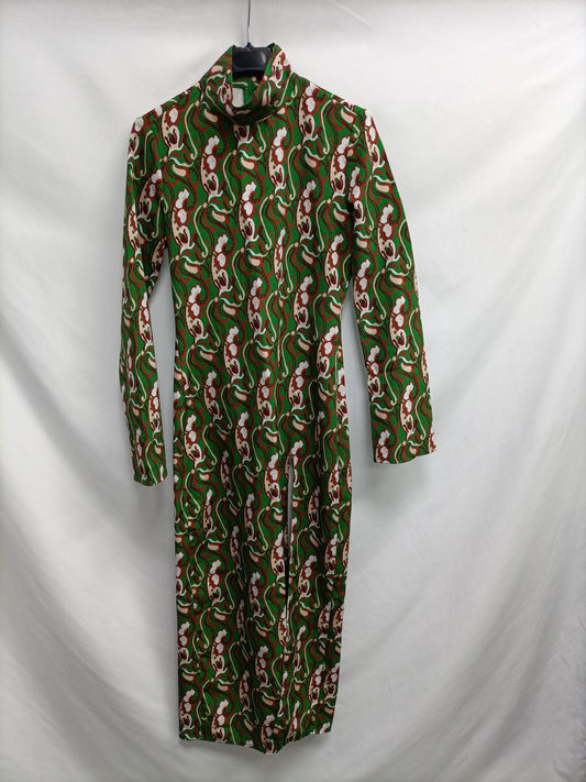 ZARA.Vestido largo gris verdoso terciopelo T.S