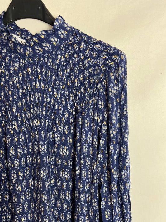MAGNOLYA. Vestido midi azul hilos dorados. T0(XS/S)