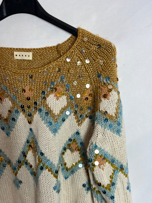 PUCHITA BY P6. Sudadera larga/vestido gris cuadros. T M
