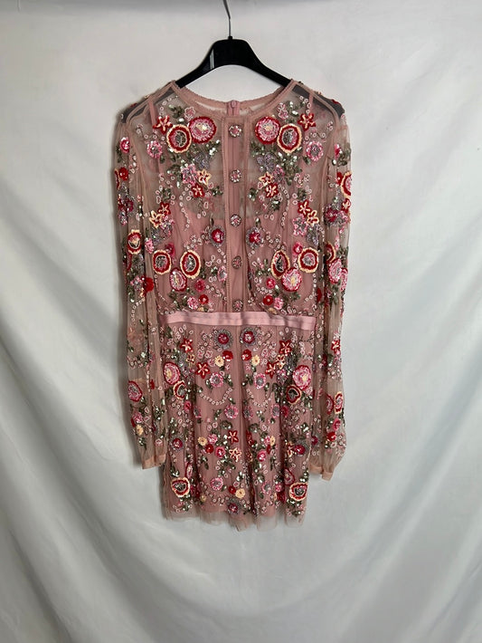 NEEDLE&THREAD. Mono corto rosa tul y pedrería . T 36