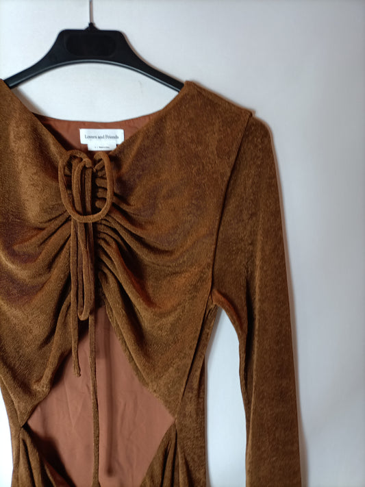 LOVERS AND FRIENDS. Vestido midi aperturas ocre. T S