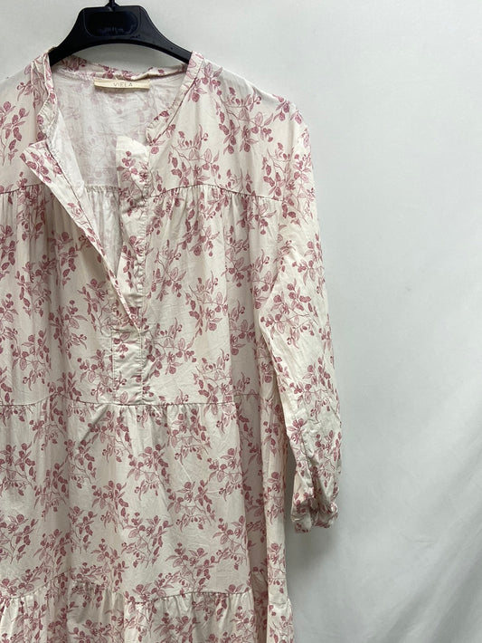 VIELA.Vestido largo blanco flores rosas T.S/M