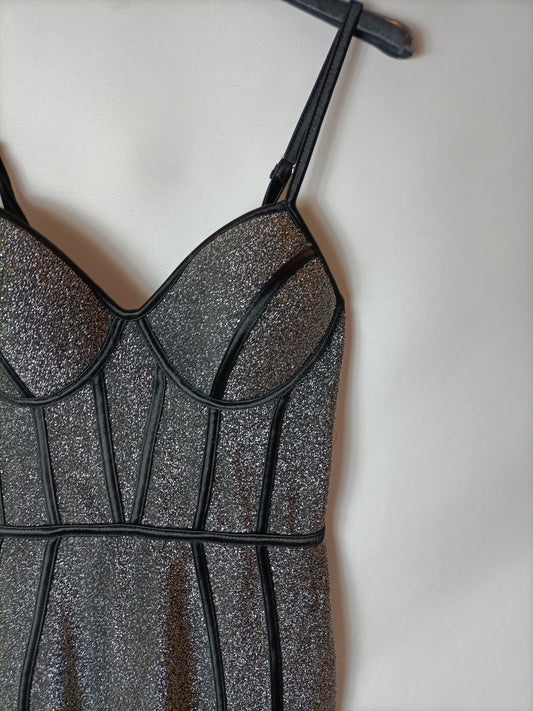 PARFOIS.Vestido tejido fruncido gris midi T.S
