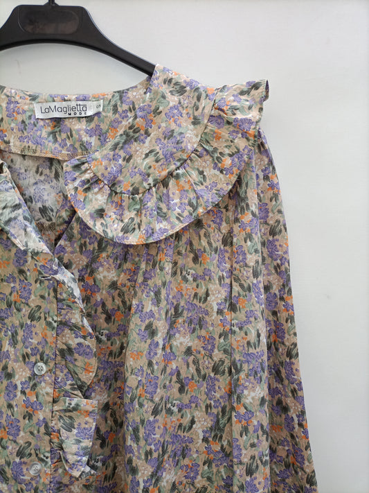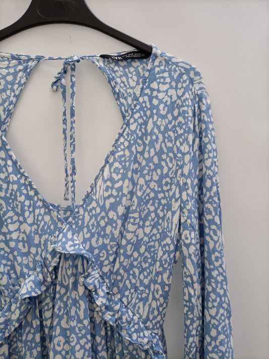 PULL&BEAR.Blusa plisado estampado geométrico T.L