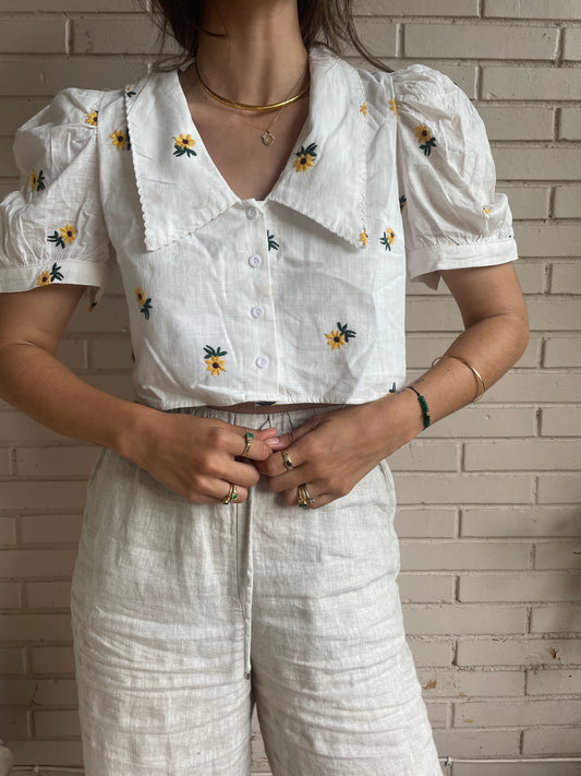 ZARA.Top/blusa cuadros mangas abullonadas T.xs
