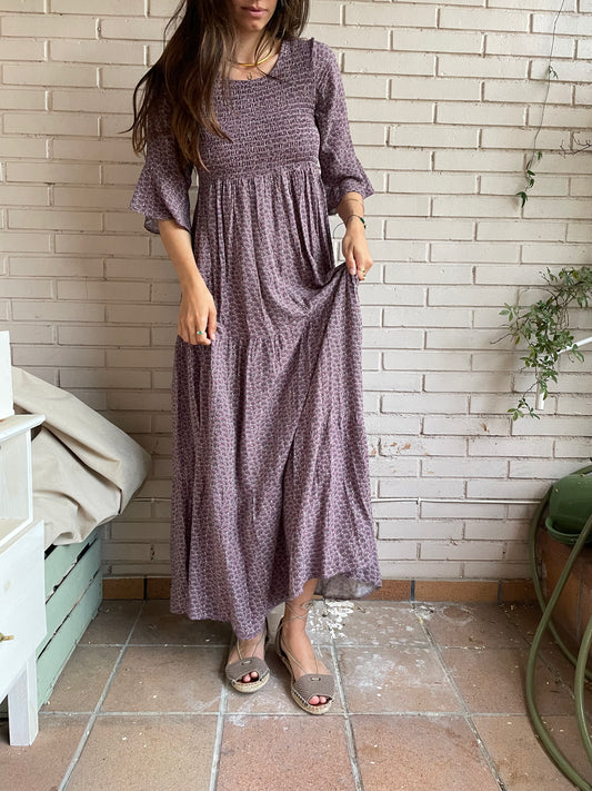 YAS.Vestido beige cuello bebé troquelado T.s/m