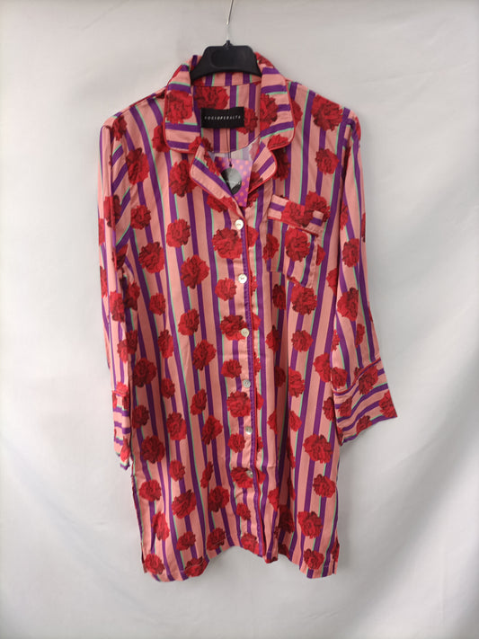 ROCIO PERALTA. Vestido camisero flores y rayas T.m