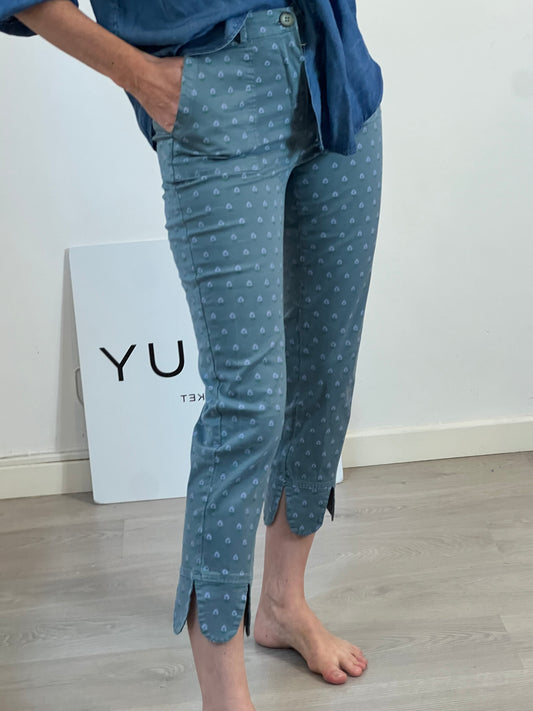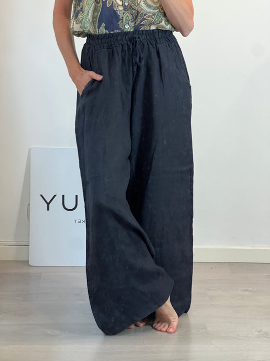 OTRAS. Pantalón lino azul marino pata ancha. T S