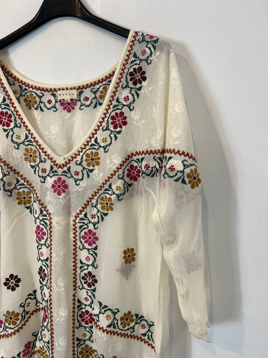 MAGNOLYA. Vestido blanco flores azules T.00(xs)