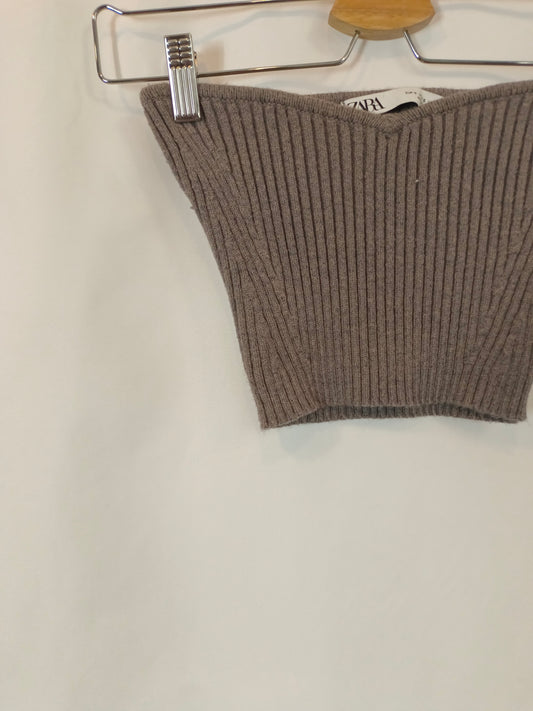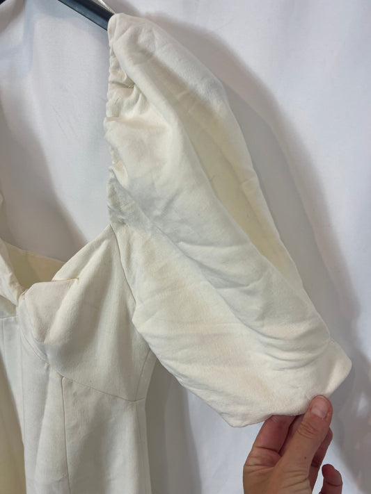 ZARA. Vestido midi color crudo detalle mangas. T XS