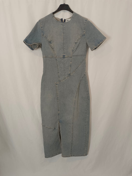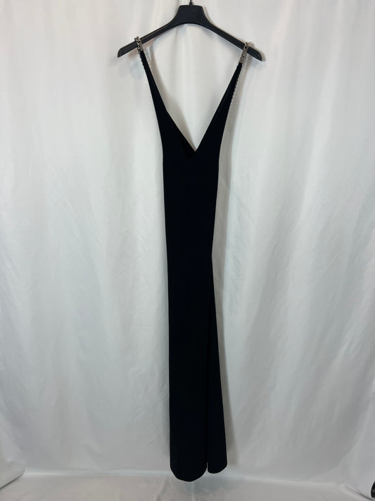 ZARA. Vestido midi negro canalé tirantes cadena. T S