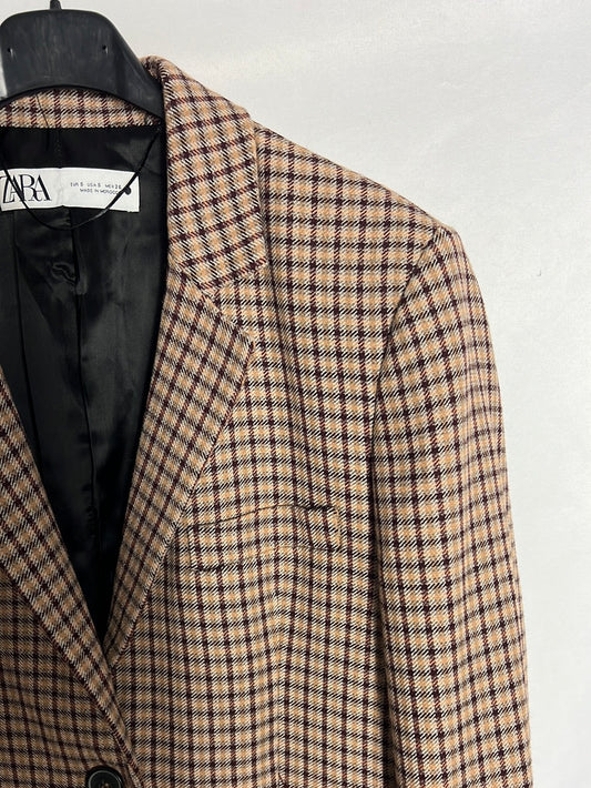 ZARA. Blazer cuadros tonos marrones. T S (oversized )