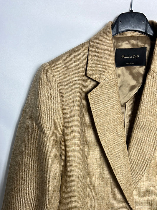 MASSIMO DUTTI. Blazer camel jaspeada lino. T 38