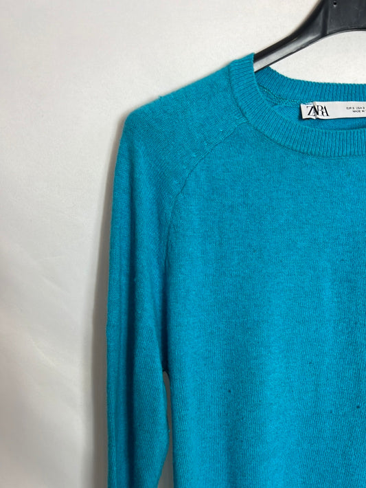 BIMBA Y LOLA. Vestido lana Merino azul cuello alto. T S