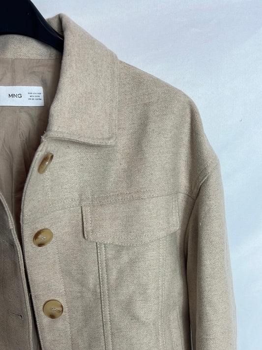 MANGO. Chaqueta beige jaspeada lana. T XXS (S)