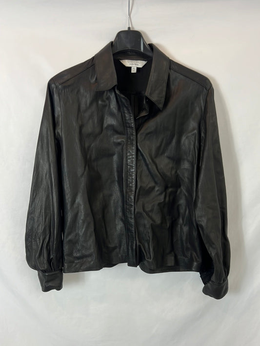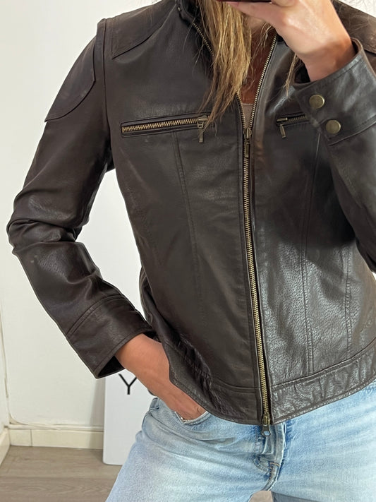 MARIE PHILIPPE. Chaqueta piel marrón cremalleras. T XL (M/L)