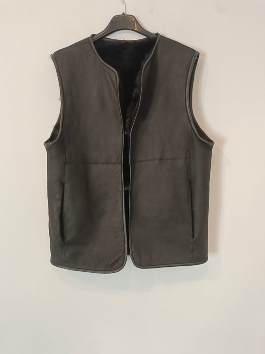 MASSIMO DUTTI. Chaleco negro pelo y piel T.u(s)