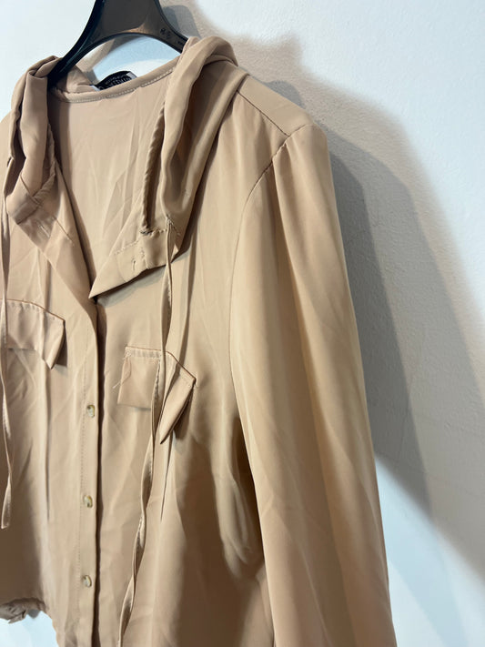 VALENTINA. Blusa/sobrecamisa beige capucha T.m