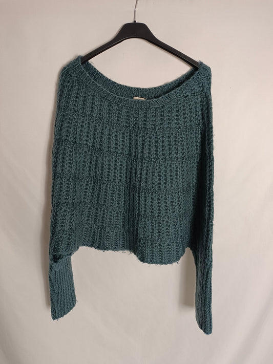 ABSOLUTE CASHMERE. Jersey azul cashemre cuello pico. T S