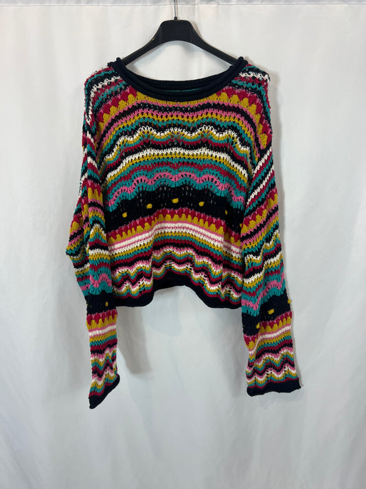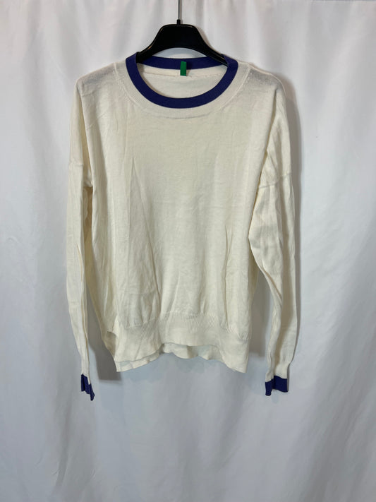 BENETTON. Jersey color crudo detalles morados T.s