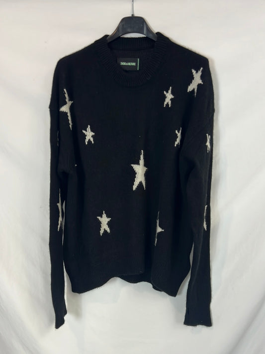ZADIG&VOLTAIRE. Jersey negro cashmere estrellas. T XS