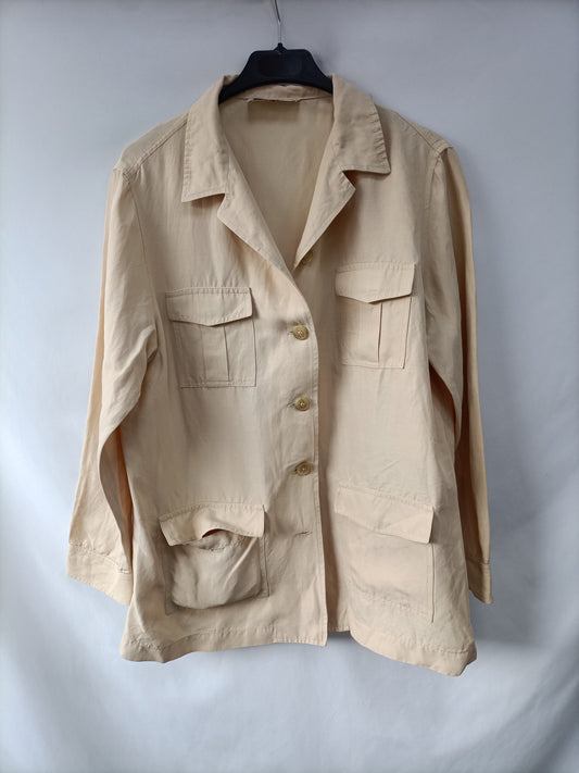 PRIMARK. Chaqueta verde efecto piel bolsillos. T 38