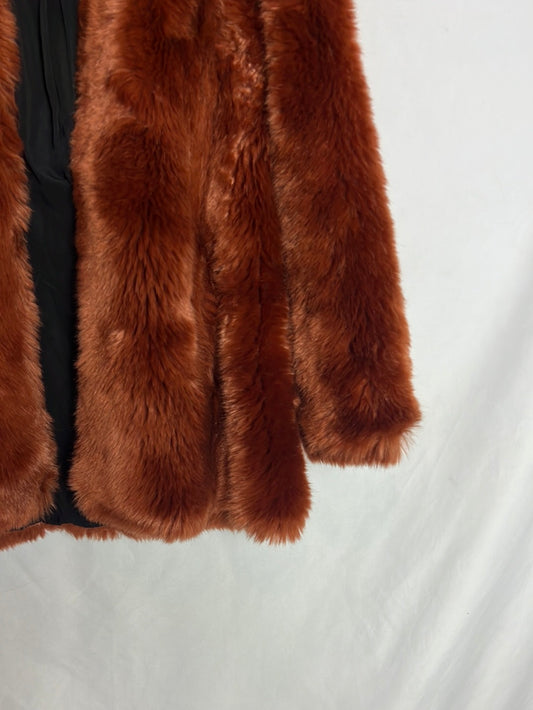 YU.YU. Abrigo pelo natural y abalorios espalda. T M/L