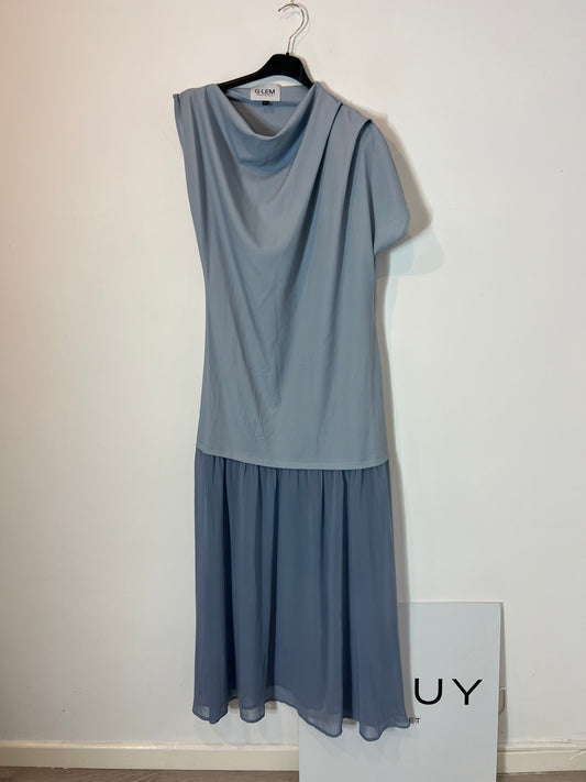 BARBARA BUI. Vestido/top azul satinado asimétrico. T 42 (m)