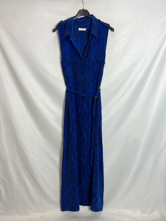 EQUIPMENT. Vestido largo seda azul print. T M
