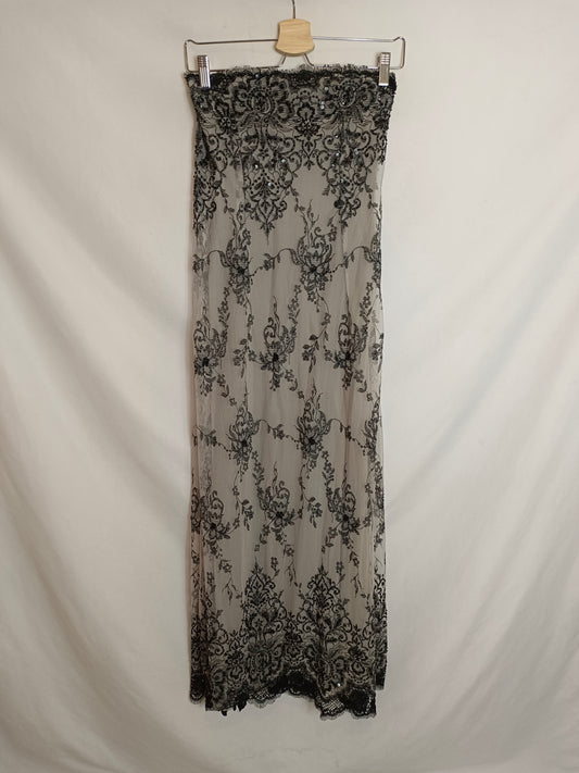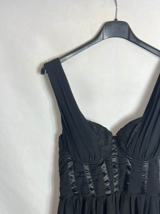 H&M. Vestido negro largo detalle lencero. T 38