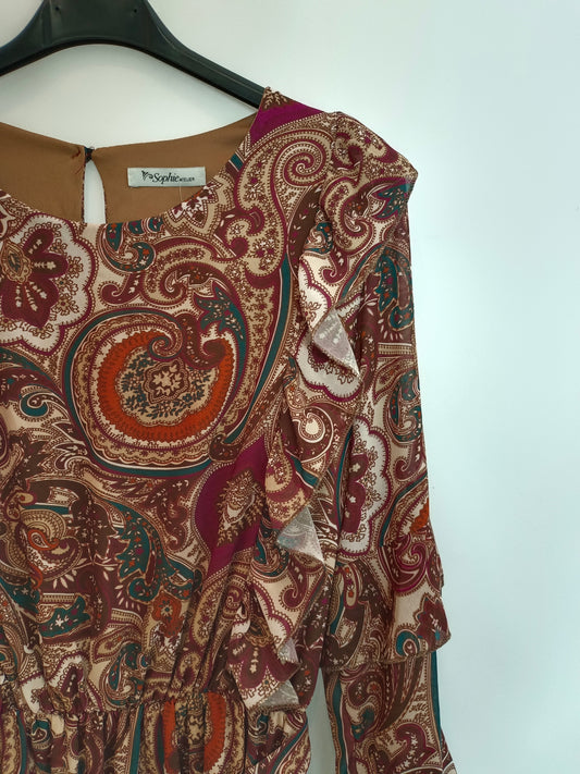 SOPHIE ATELIER. Vestido midi estampado volantes. T M
