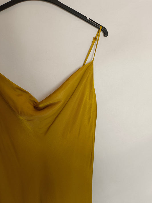 NEW COLLECTION. Vestido midi satinado azul. T.S