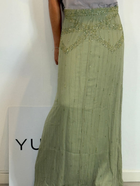 MAGNOLIA. Vestido largo gasa rosa abalorios. T M