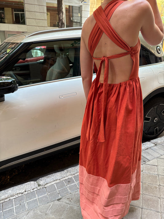 IQ COLLECTION. Vestido largo bicolor espalda cruzada. T M