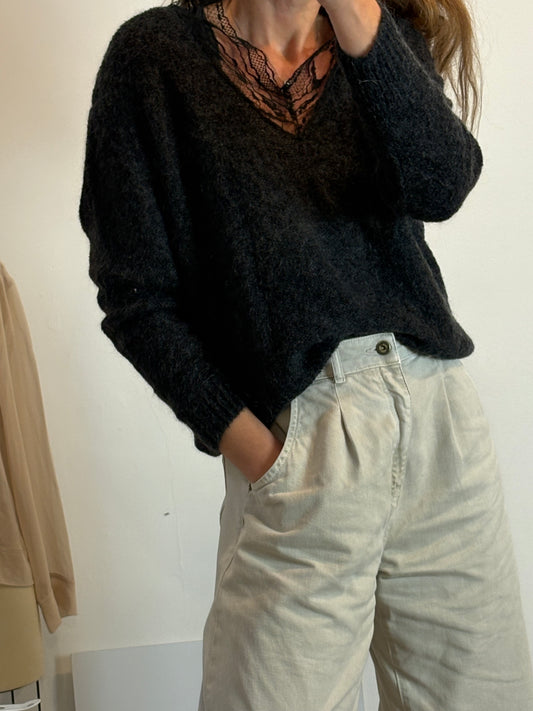 AMERICAN VINTAGE. Jersey negro cuello pico con lana