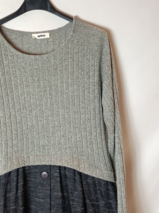 SKFK Vestido gris marengo con hilos de colores. T. 40