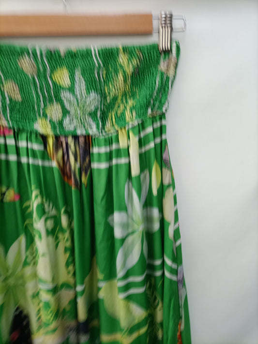 H&M.Vestido largo palabra de honor tonos rosas T.34