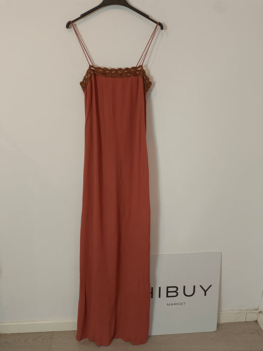 JORGE VÁZQUEZ. Vestido largo estampado satinado. T 38