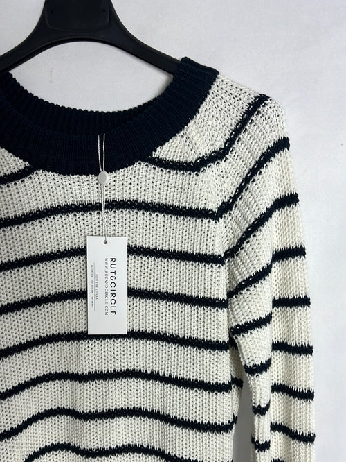 SH COLLECTION. Blusa azul rayas hombros al aire. T XS