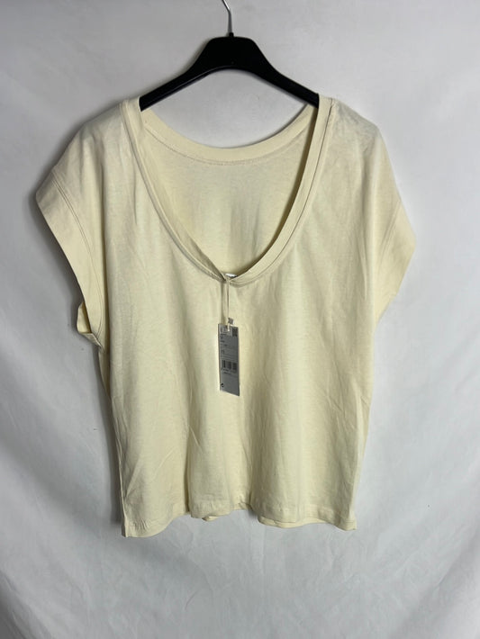 MANGO. Camiseta amarillo claro espalda baja. T XS