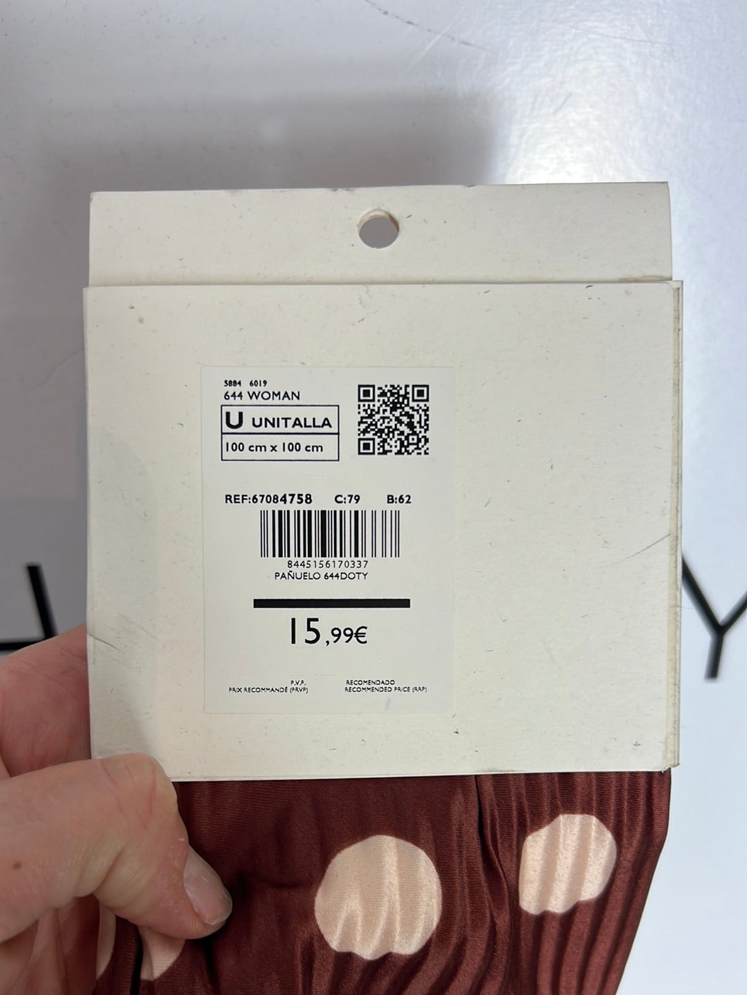 MANGO. Pañuelo multiusos marrón plisado lunares. TU
