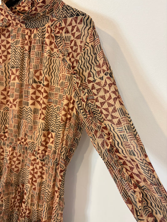 MARIA DE LA ORDEN. Vestido largo azul fruncidos