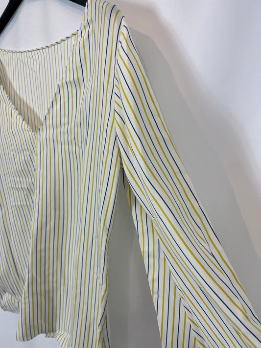 MASSIMO DUTTI. Blusa rayas detalle volantes. T 34