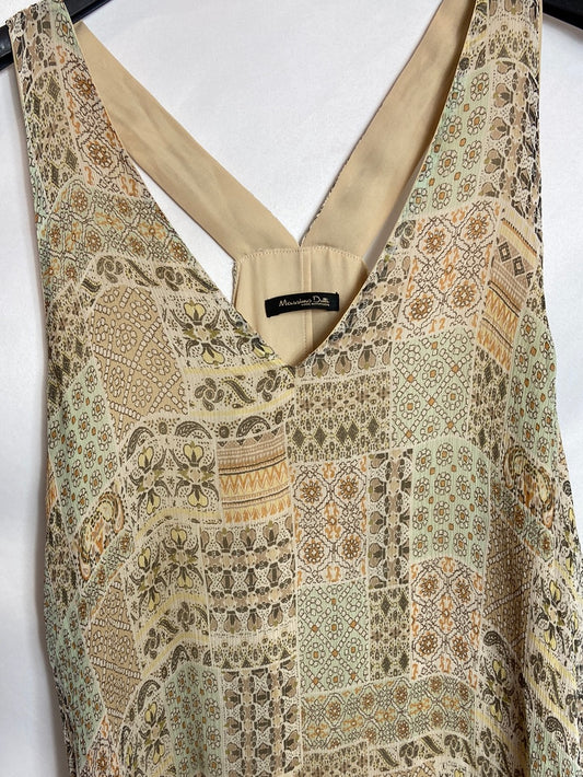 MASSIMO DUTTI. Vestido estampado cuello pico. T. XL