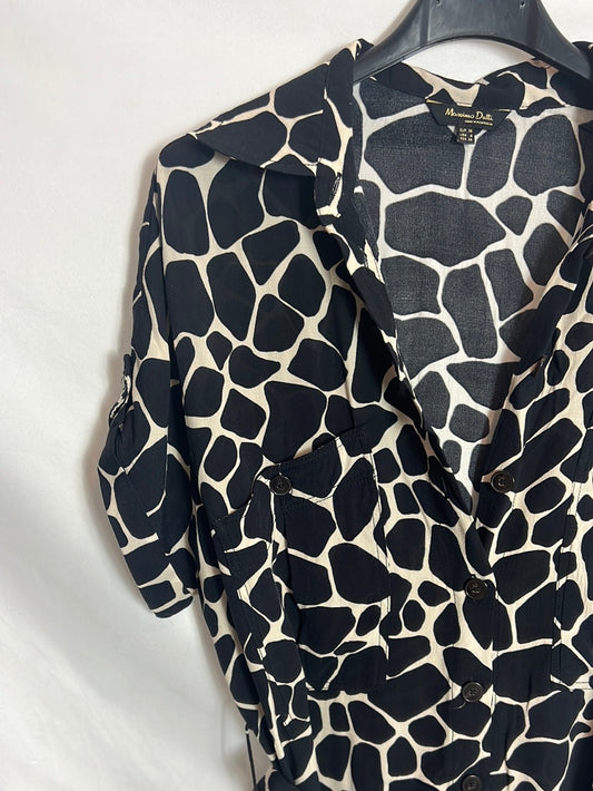 MASSIMO DUTTI. Vestido negro estampado camisero. T 36