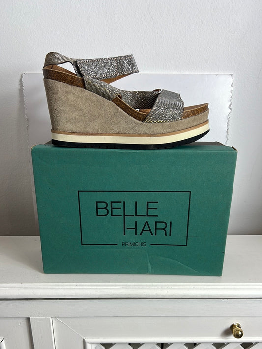 SANDALO ESSENCE. Sandalia marrón detalles pedrería azules . T 39