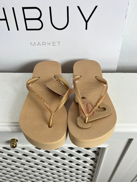 HAVAIANAS. Chanclas doradas suela gruesa. T41-42