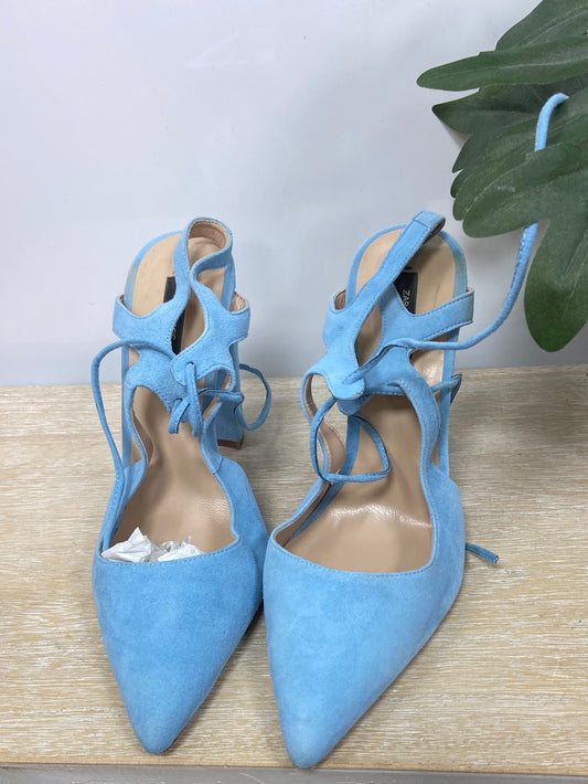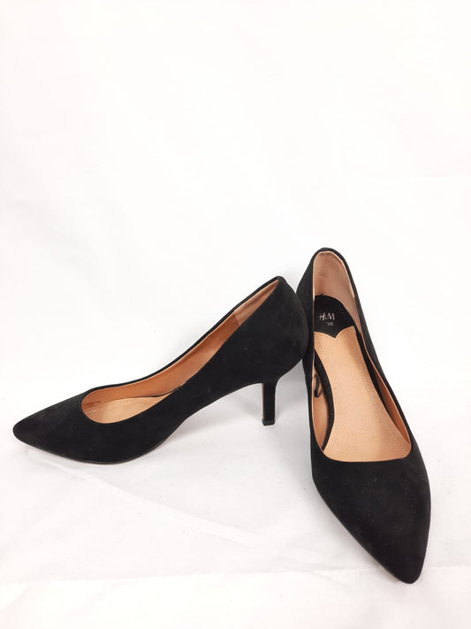 UTERQÜE. Sandalias tacon negro suela bicolor T.39